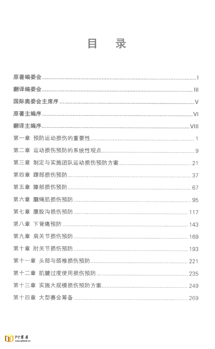 书名: 奥林匹克运动科医手册 运动损伤预防 作者: Roald Bahr,Lars Engebretsen著;詹晖,李豪杰编译 出版社: 备战2012年奥运会科技专家组 出版日期: 2011.10 页数: 288 电子版下载链接 标签:国外体育科技与运动训练科学化最新成果丛书、运动损伤