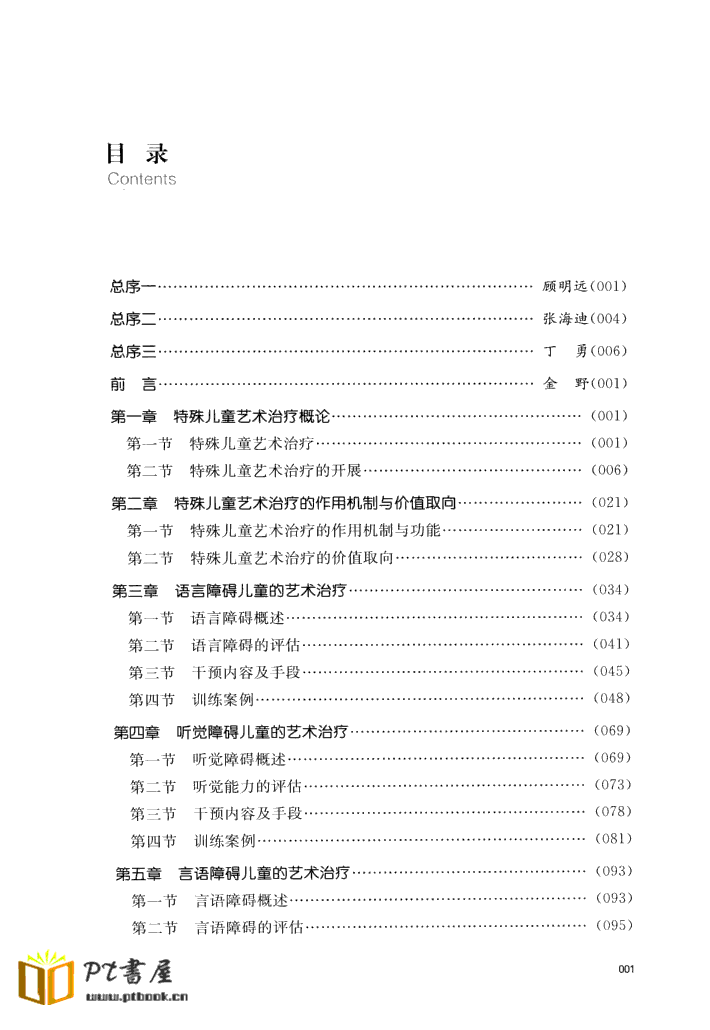 书名: 特殊儿童艺术治疗 作者: 金野著 出版社: 南京师范大学出版社 出版日期: 2015.01 页数: 250 ISBN: 978-7-5651-1967-5 电子版下载链接 内容提要: 本书主要内容包括:特殊儿童艺术治疗概论;特殊儿童艺术治疗的作用机制与价值取向;语言障碍儿童的艺术治疗;听觉障碍儿童的艺术治疗;言语障碍儿童的艺术治疗等。 标签:特殊儿童教育与康复文库