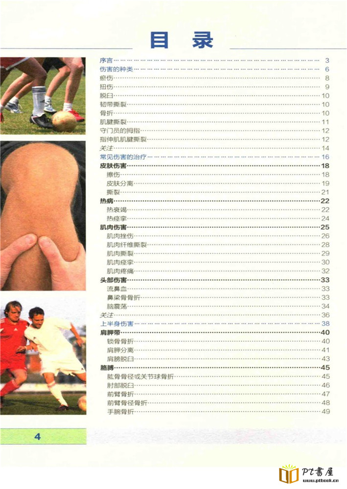 书名: 足球运动伤害预防与治疗方法图解指导 作者: (德)拉尔夫·迈耶(RALF MEIER),安德烈亚斯·舒尔(ANDREAS SCHUR)著;朱禹丞译 出版社: 人民邮电出版社 出版日期: 2016.07 页数: 124 ISBN: 7-115-42096-1 电子版下载链接 内容提要: 不管是一般的足球爱好者还是职业的足球运动员,双腿都是最宝贵的…… 标签:足球运动伤害