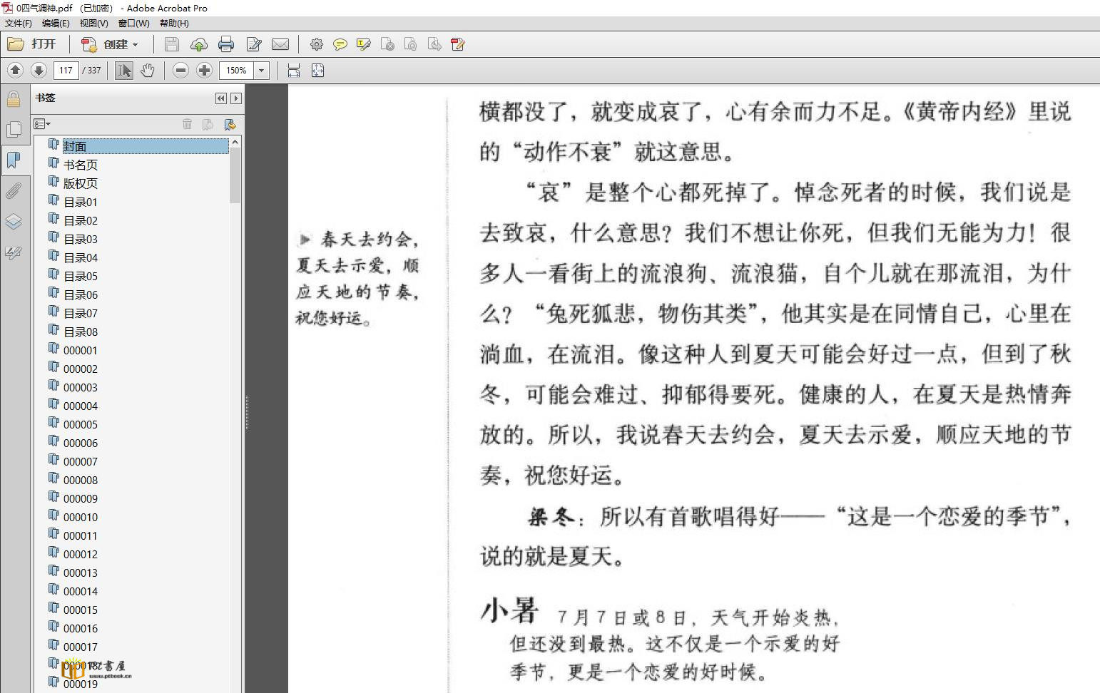 内容提要: 《四气调神》是《黄帝内经?素问》中的第二篇。这是一本教我们如何根据一年四季的气候变化来调整自己的饮食之道、做人之道、做事之道,以便身体更好、更快地汲取各种环境中的正能量,由此活得强大、自足的生命科学经典读物。与其说它是一部伟大国学经典的精彩解析,不如说它是关乎幸福的人间开示,实际上它更是一本人生最好活法使用说明书。总之,每一个读过它的人都会大呼过瘾,心怀温暖。